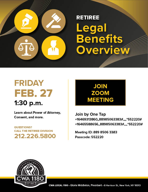 | Tues. 2/17 | IN-PERSON Review of Online Lessons / Q&A | 6 Harrison St. Call the Retiree Division to reserve your spot today: 212.226.5800 |