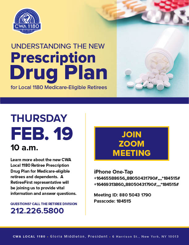 Thurs. 2/19 | Prescription Drug Plan Overview | Join from PC, Mac, iOS or Android: iPhone One-Tap +16465588656,,88050431790#,,,,*184515# +16469313860,,88050431790#,,,,*184515# Meeting ID: 880 5043 1790 |